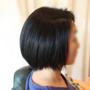 | 前髪〜フェイスライン縮毛矯正と ヘアスタイルの調整、全体カット |